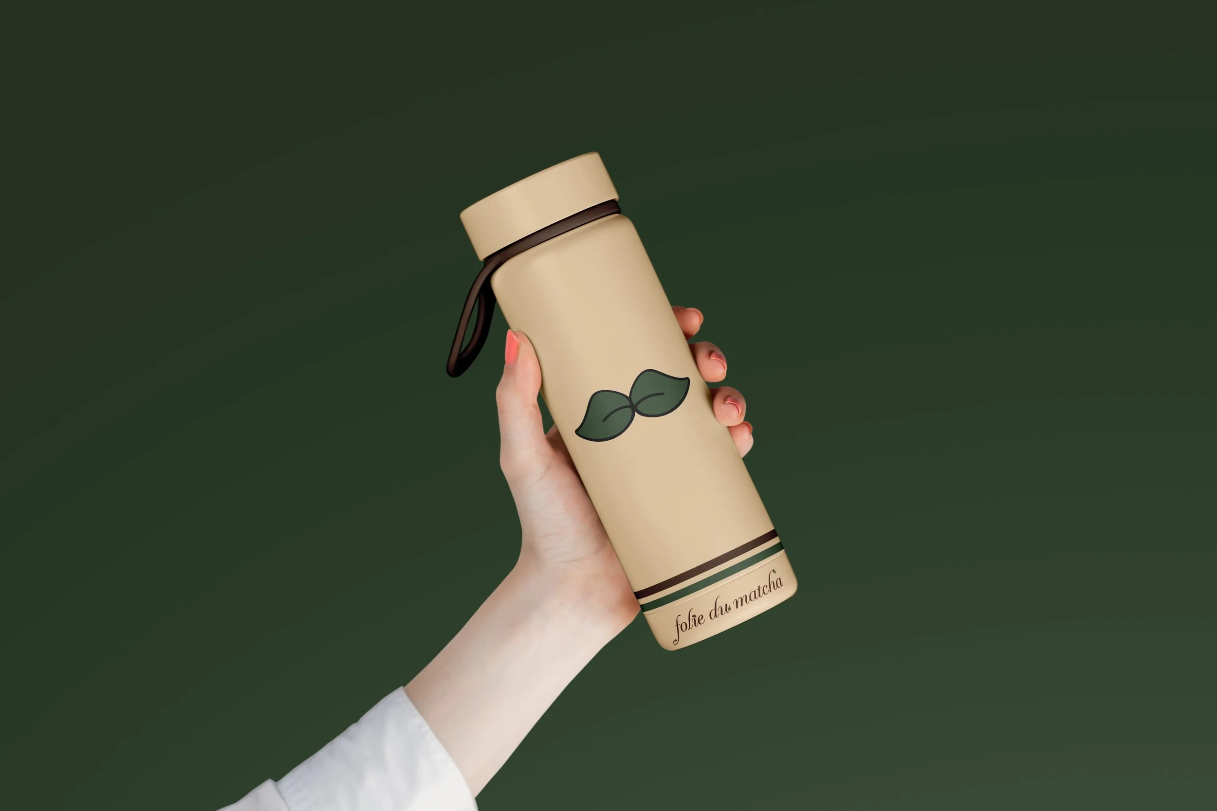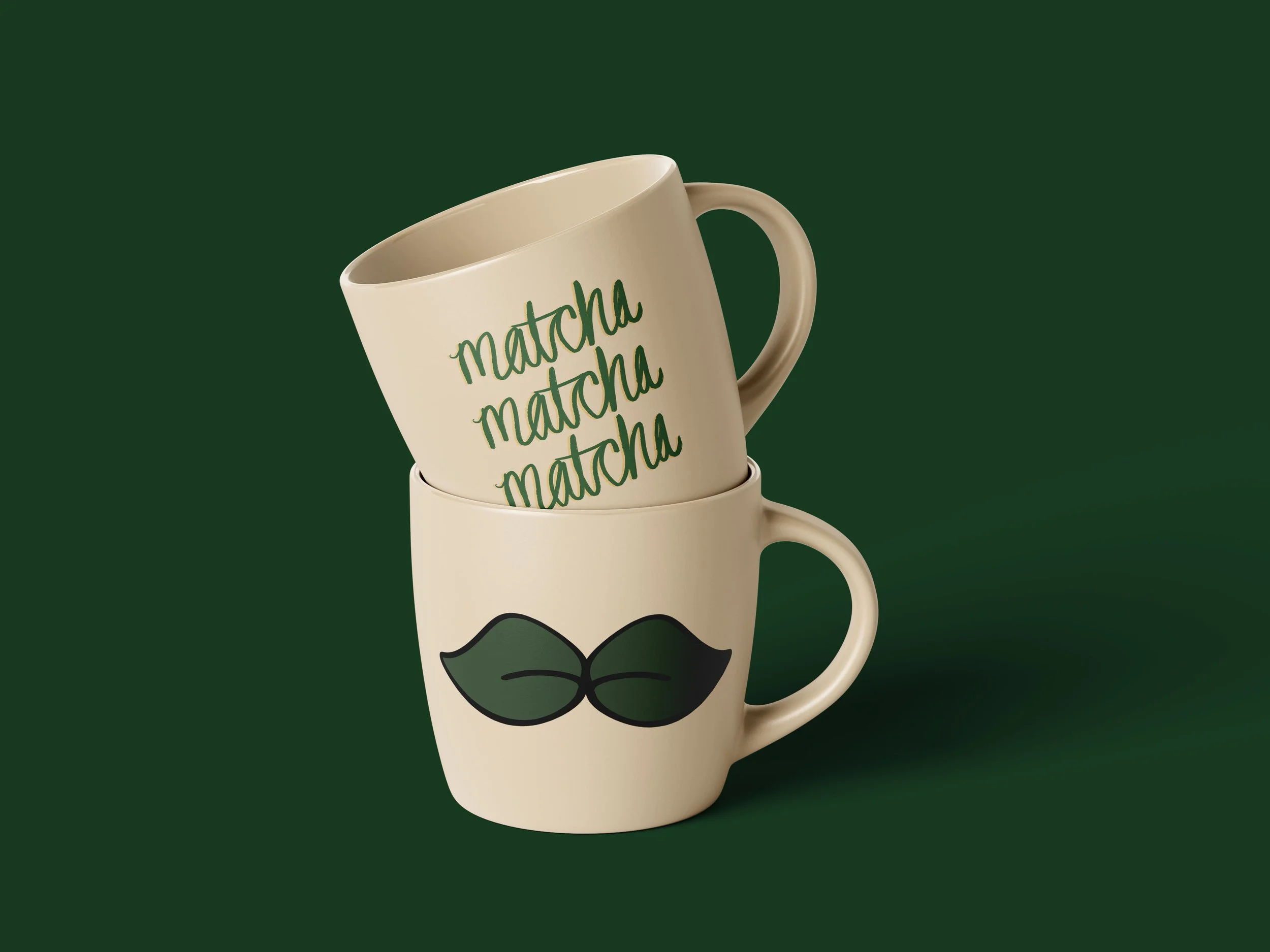 Folie du Matcha’s branding uses a palette of dark forest green and soft sand tones to create a refined, welcoming feel. These earthy colors reflect the natural qualities of matcha. The menu and storefront take a fully illustrative approach, with each menu item featuring a digital illustration to contrast the type-heavy logo.
