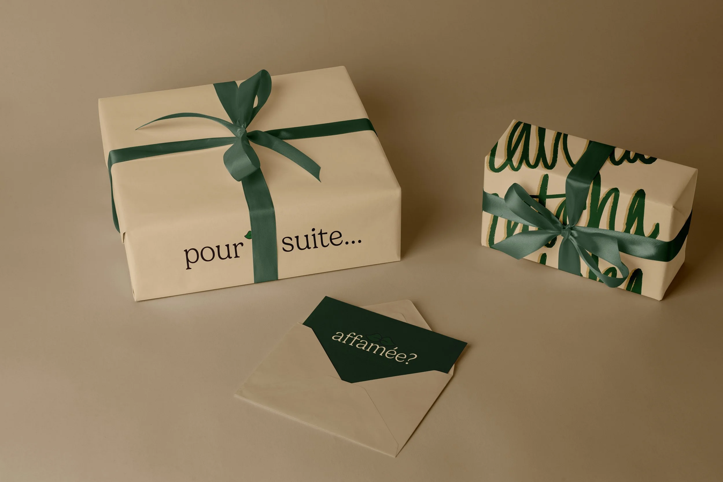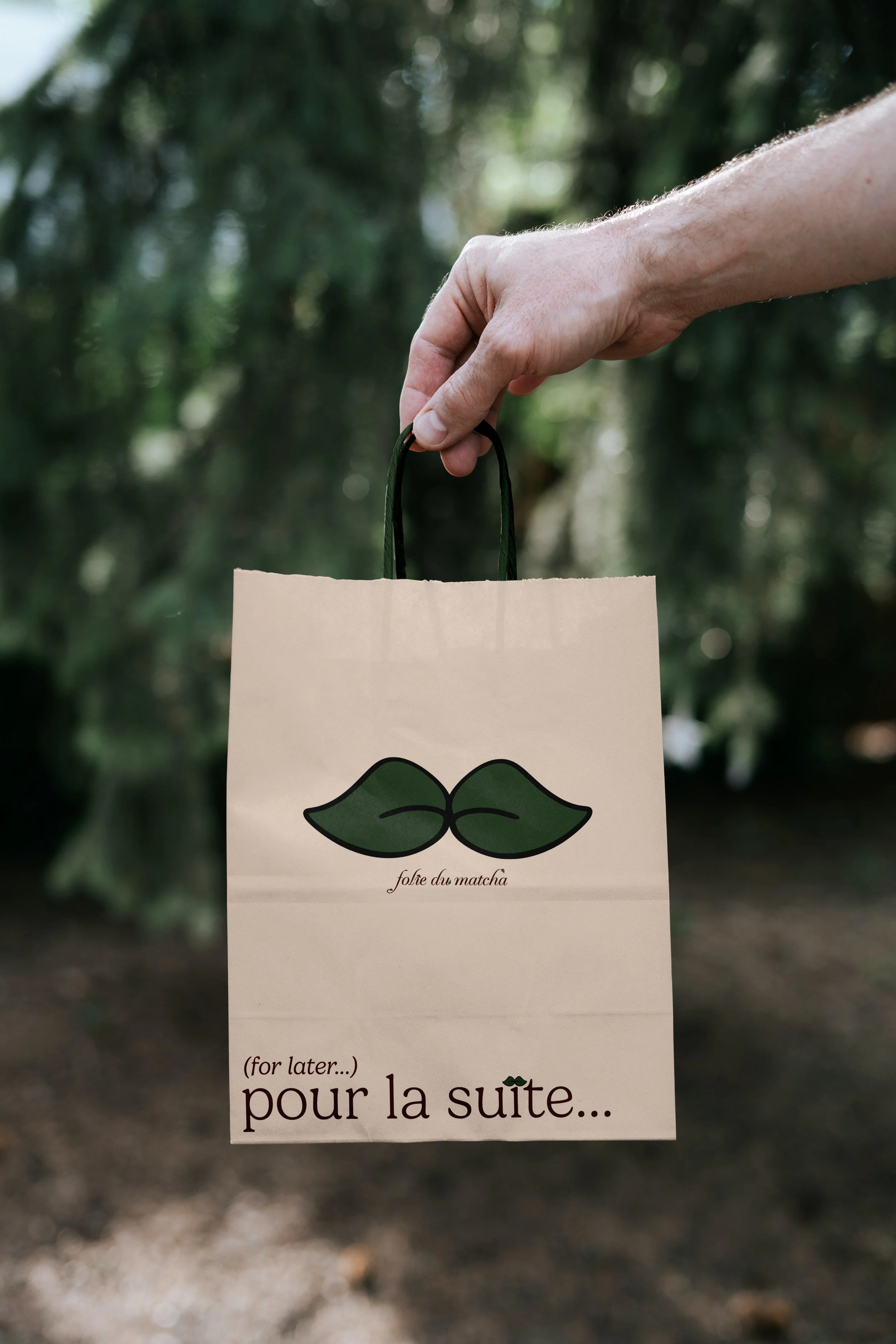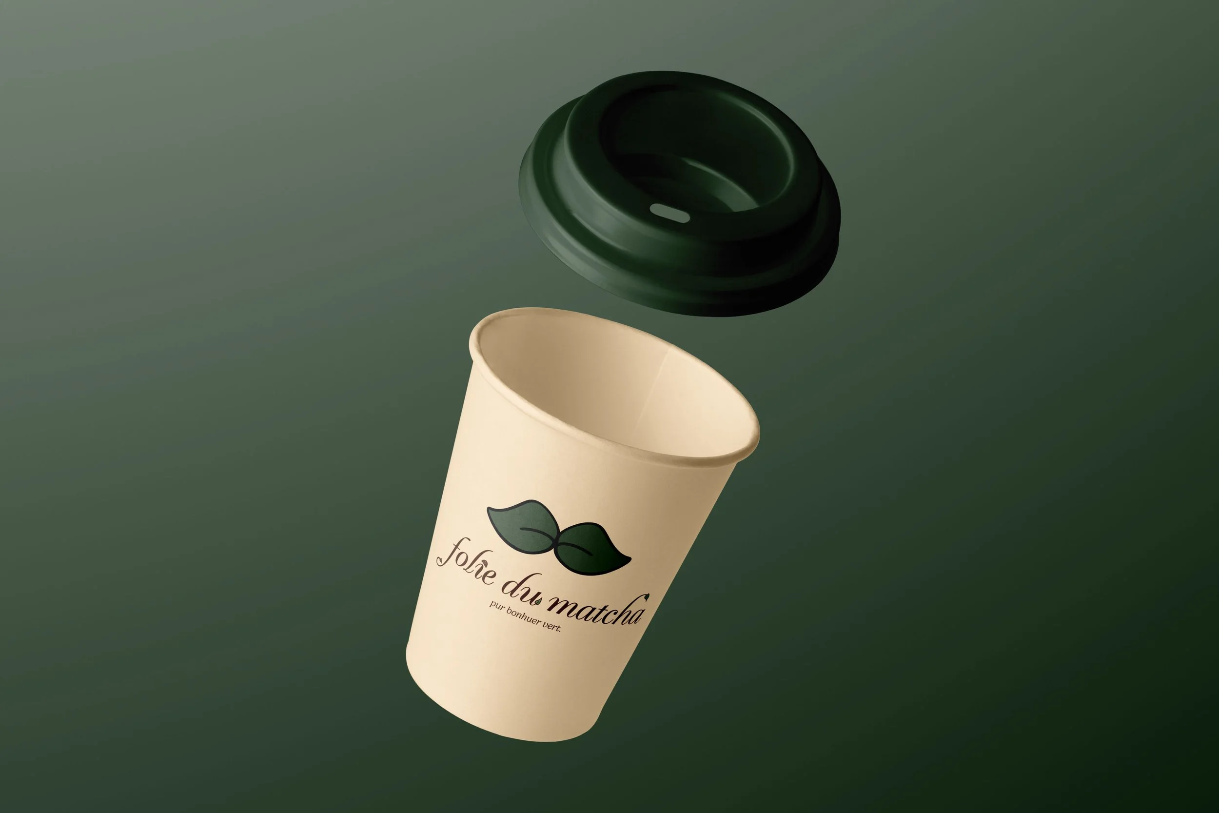 Folie du Matcha is a fusion café that blends the elegance of French pastries with the vibrant, earthy flavors of matcha. The logo features the brand name set in an elegant cursive typeface, paired with small supporting illustrations to reflect the fusion of matcha and French pâtisserie.