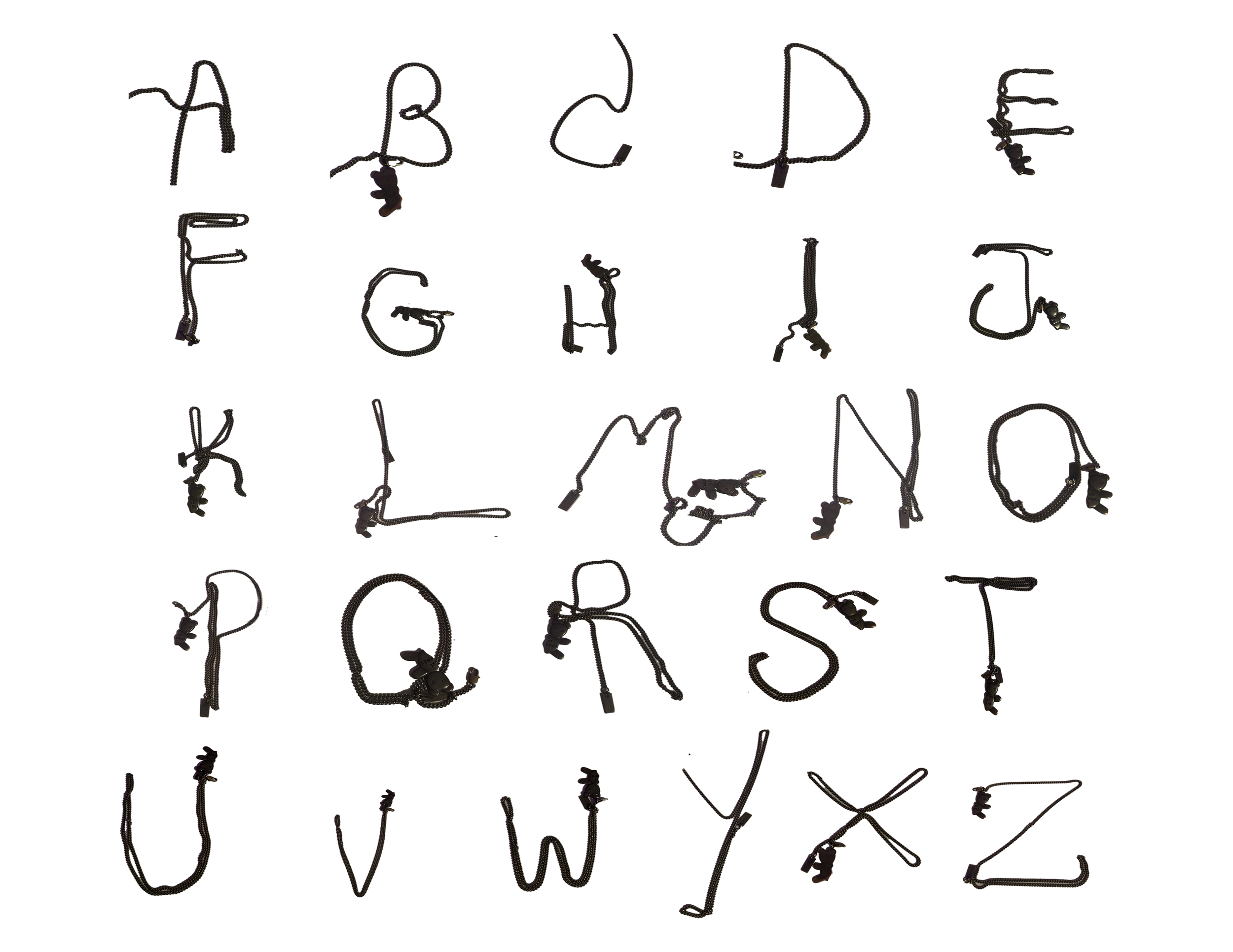 This project explored building letterforms from everyday materials instead of traditional drawing tools. I created a complete alphabet using a single found object: my necklace. Committing to a single consistent material throughout the set gives each letterform structure and involves some problem-solving. I then transformed my alphabet into a typographic system and used it in a variety of mockups.